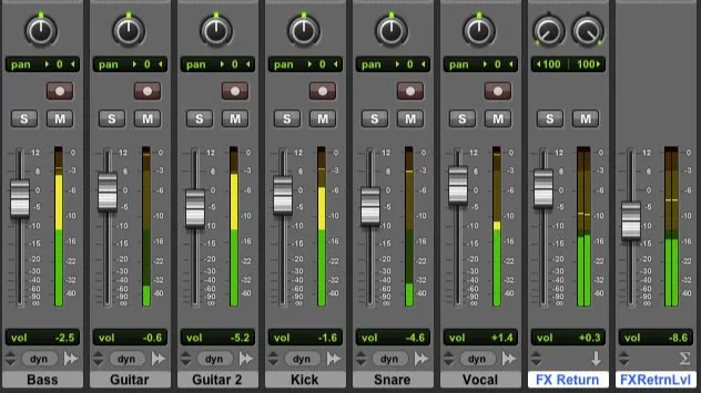 Se comienza por ajustar los niveles y la ubicación en el espectro estéreo, para dar prioridad y crear espacio.